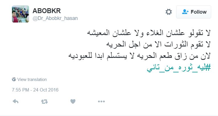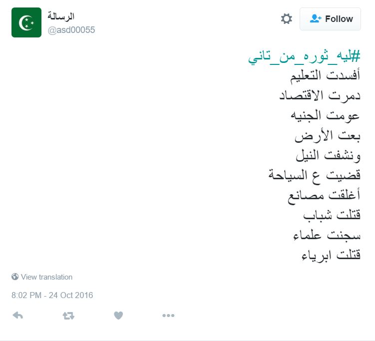 دشن رواد مواقع التواصل الاجتماعي، هاشتاج باسم “ليه ثورة من تاني”، دعوا خلالها للتظاهر ضد النظام في مصر، وعدم الرضوخ للظلم، ولانتهاكات العسكر.