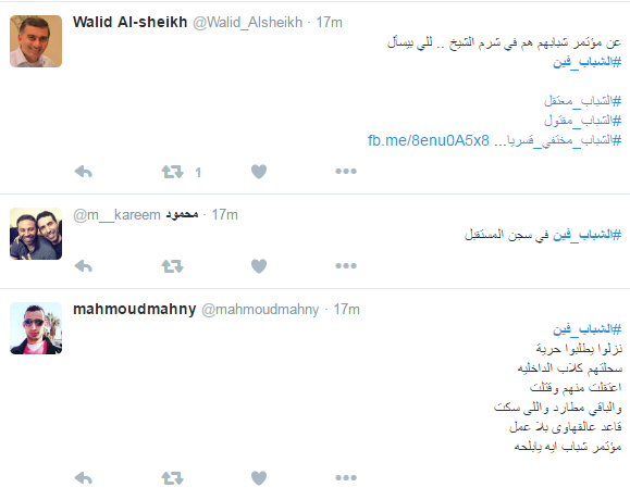 دشن رواد موقع التواصل الاجتماعي”تويتر” وسم “الشباب فين”، تزامنًا مع بدء فعاليات المؤتمر الوطني للشباب بمدينة شرم الشيخ ومشاركة 3000 شاب يمثلون الجامعات والرياضيين والمثقفين والأحزاب.