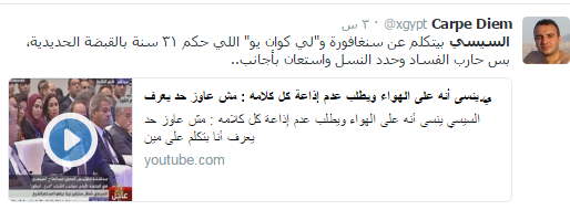 واستقبل نشطاء على مواقع التواصل الاجتماعي حديث السيسي بسخرية لتناسيه أنه على الهواء وطالب بعدم إذاعة كل كلامه.