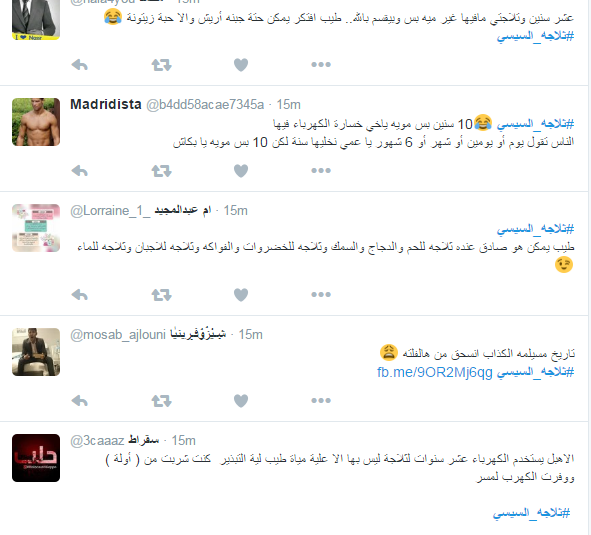 أثارت تصريحات عبد الفتاح السيسي في مؤتمر الشباب، سخرية مواقع التواصل الاجتماعي، والتى قال في بعضها :”قعدت 10 سنين تلاجتي كان فيها ميه بس”.