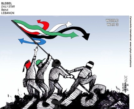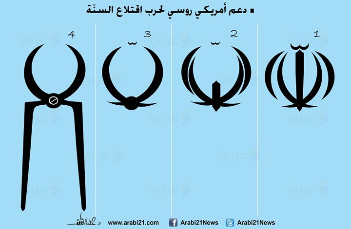 – عبر رسم “عربي 21” اليوم، عن الحرب الامريكية الروسية، لاقتلاع أهل السنة من المنطقة العربية.