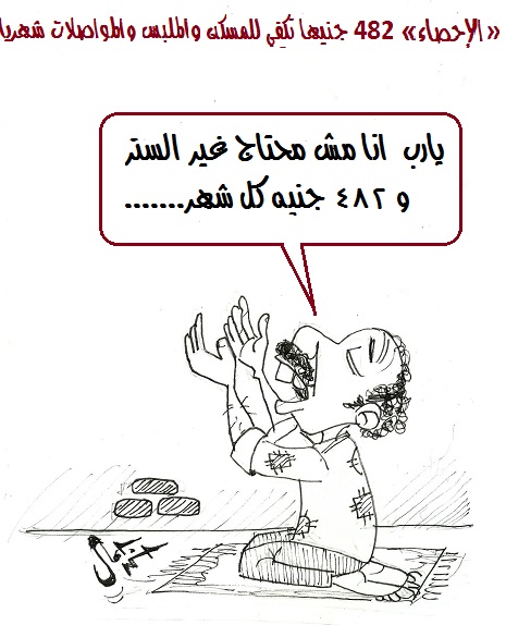 – علقت “فيتو” في كاريكاتير اليوم،  على تصريح ” الإحصاء” بأن 482 جنيهاً تكفي لمعيشة المواطن.
