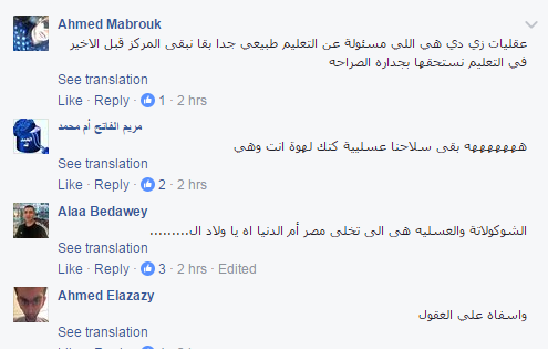 رواد موقع التواصل الإجتماعي “فيس بوك” أعربوا عن استياءهم جراء طلب المدرسة من التلاميذ التخلي عن الشوكولاتة والعسلية من أجل مصر مطالبين اياها بأن تكون قدورة لهم وتتخلى عن مصروفات المدرسة.
