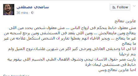 وأضاف في منشور له على صفحته بموقع التواصل الإجتماعي “فيس بوك”: “أنا لي أنا وصديقى العادلي ومرضى كتير أكثر من شهرين علشان نروح المنيل ولم يتم ترحيلنا”.