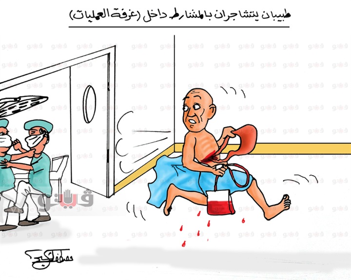 وعبرت “فيتو” في كاريكاتير اليوم، عن خناقات الأطباء داخل غرفة العمليات بكاريكاتير، والتي كان آخرها اشتباك بين طبيبين، تسبب أحدهما في جرح غائر في الوجه بعد اشتباكهما بمشارط العمليات.