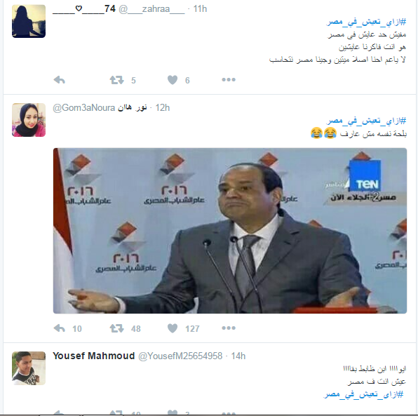 تصدر وسم “ازاي تعيش في مصر” موقع تويتر في مصر، خلال الساعات الأخيرة، تنديدًا بالأوضاع الاقتصادية والمعيشية الصعبة التي يمر بها الشعب المصري، بعد القرارات الاقتصادية الأخيرة الخاصة برفع الدعم عن المحروقات.