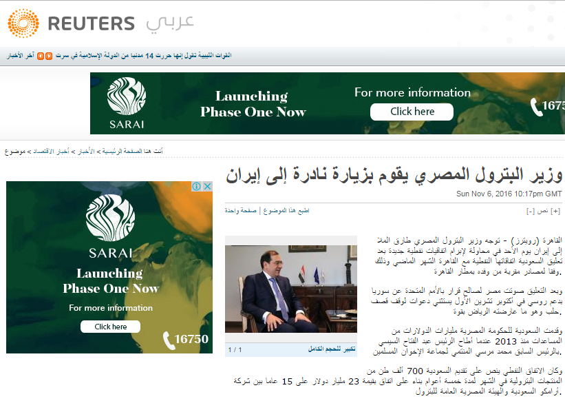 وزيارة الملا لإيران خصم السعودية الرئيسي في المنطقة قد تشير إلى تصدع أكبر في العلاقات بين مصر والرياض، وقدمت السعودية للحكومة المصرية مليارات الدولارات من المساعدات منذ 2013م، عندما أطاح عبدالفتاح السيسي بالرئيس السابق محمد مرسي المنتمي لجماعة الإخوان المسلمين.