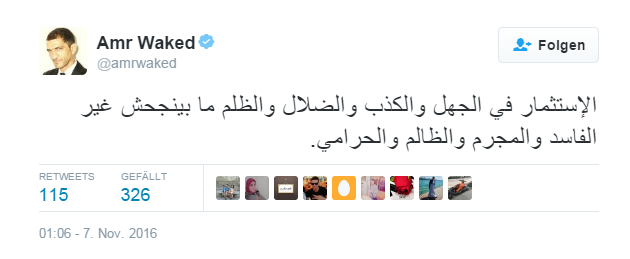 وأضاف خلال منشور له علي صفحته الشخصية بموقع التدوينات “تويتر”: “الاستثمار في الجهل والكذب والضلال والظلم ما بينجحش غير الفاسد والمجرم والظالم والحرامي”.