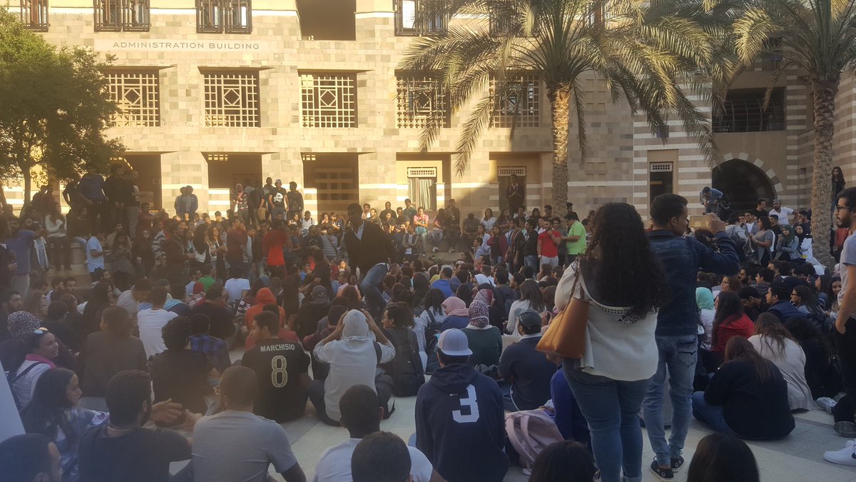 تظاهر طلاب الجامعة الأمريكية، اليوم الإثنين، اعتراضًا على زيادة أسعار المصروفات بعد تعويم الجنيه المصري، وتحرير سعر صرفه أمام العملات الأجنبية.