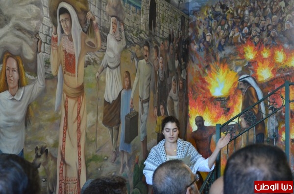 وهي جدارية تحكي القضية الفلسطينية منذ عام 1917م، وضمت الجدارية أسماء (418) قرية فلسطينية تم تدميرها وتهجير أهلها عام 1948م، وأسماء المخيمات الفلسطينية، يتوسطها مجسم لطائر العنقاء تعبيرًا على خلود الشعب الفلسطيني في أرض كنعان، وحتمية العودة.