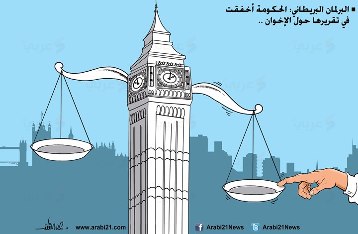 ونشرت “عربي 21” رسمًا ساخرًا، يعبر عن تصريح البرلمان البريطاني، والذي قال فيه إن الحكومة أخفقت في تقريرها عن الإخوان.