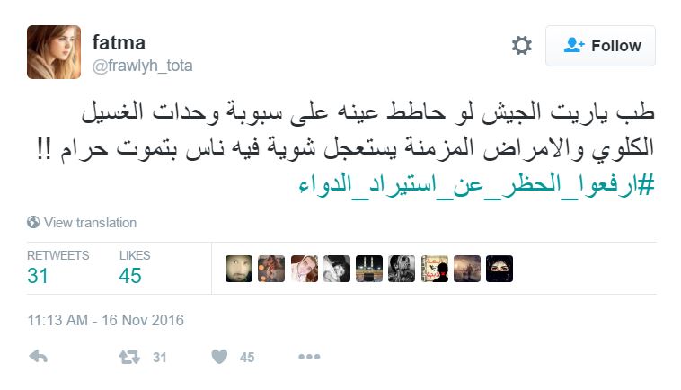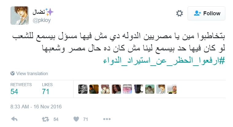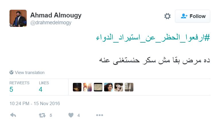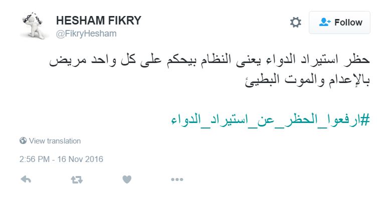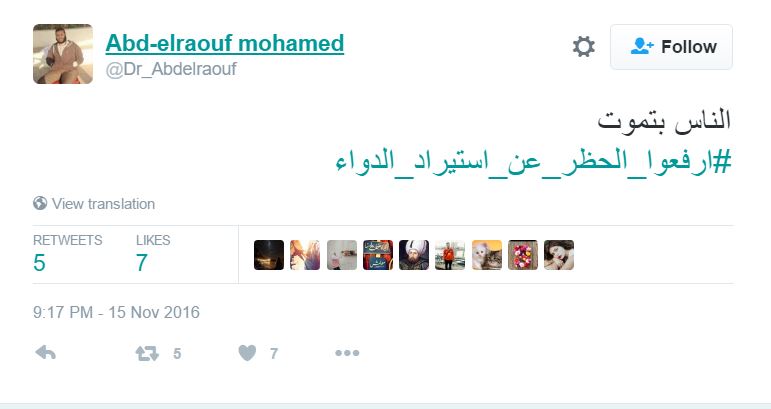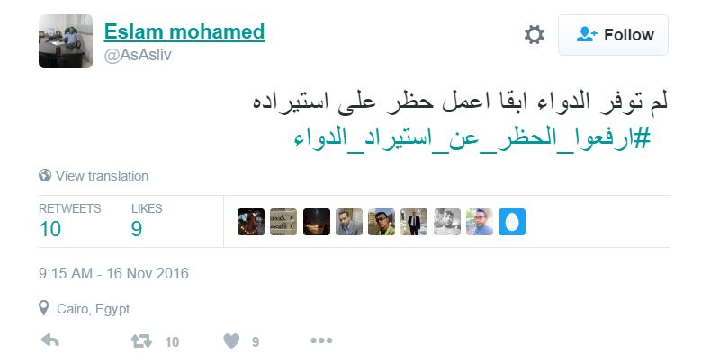 دشن رواد مواقع التواصل الاجتماعي هاشتاج باسم ” #ارفعوا_الحظر_عن_استيراد_الدواء”، تعبيرًا عن غضبهم لنقص عدد كبير من الأدوية داخل السوق المصري، بسبب فرض الحظر على استيرادها.