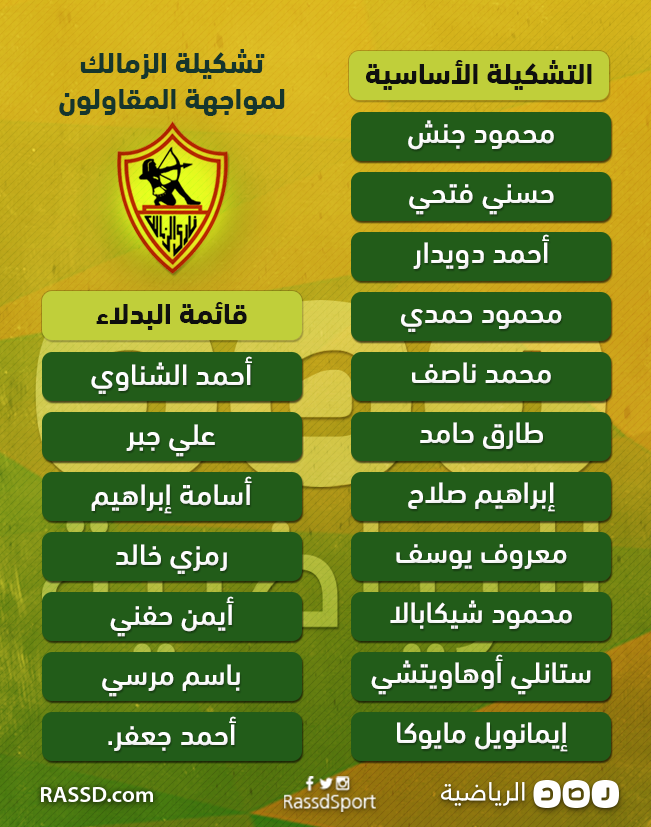 يدخل فريق الزمالك مباراة اليوم، بتشكيل مكون من الآتي: