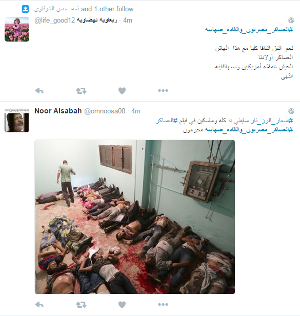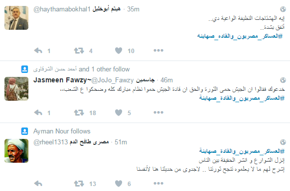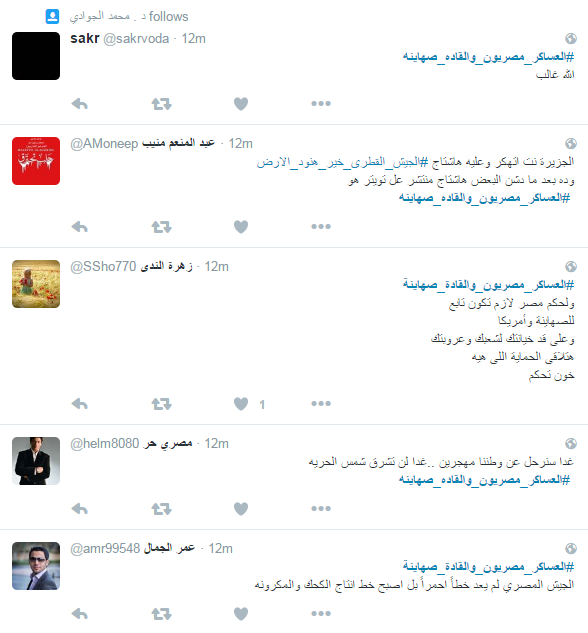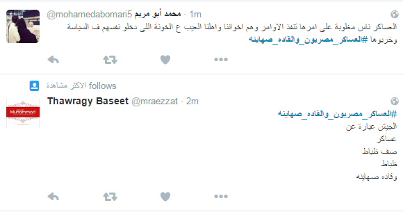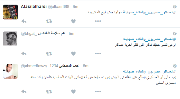وحصل هاشتاج “#العساكر_مصريون_والقاده_صهاينه” على تريند داخل مصر ..وجاءت التغريدات كالتالى ..