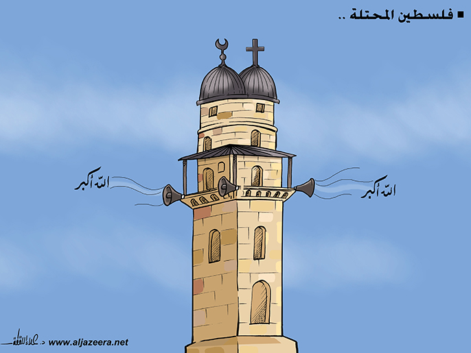 ونشرت “الجزيرة”، صورة كاريكاتيرية تصف الواقع داخل فلسطين المحتلة بعد حظر الأذان داخل القدس، ومواجهة القرار برفع الأذان من الكنائس والمساجد.