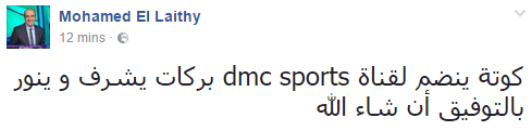 وجاء إعلان الليثي، عبر حسابه الشخصي على “فيس بوك”: “كوتة ينضم لقناة dmc sports بركات يشرف و ينور بالتوفيق إن شاء الله”.