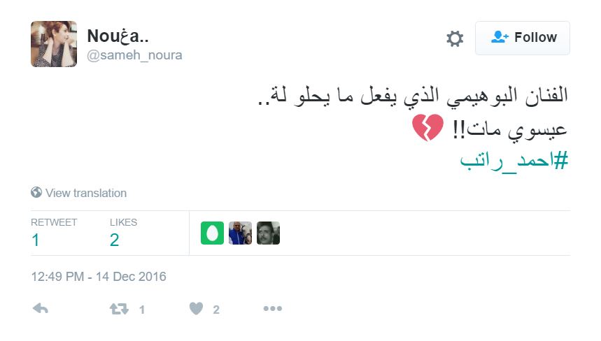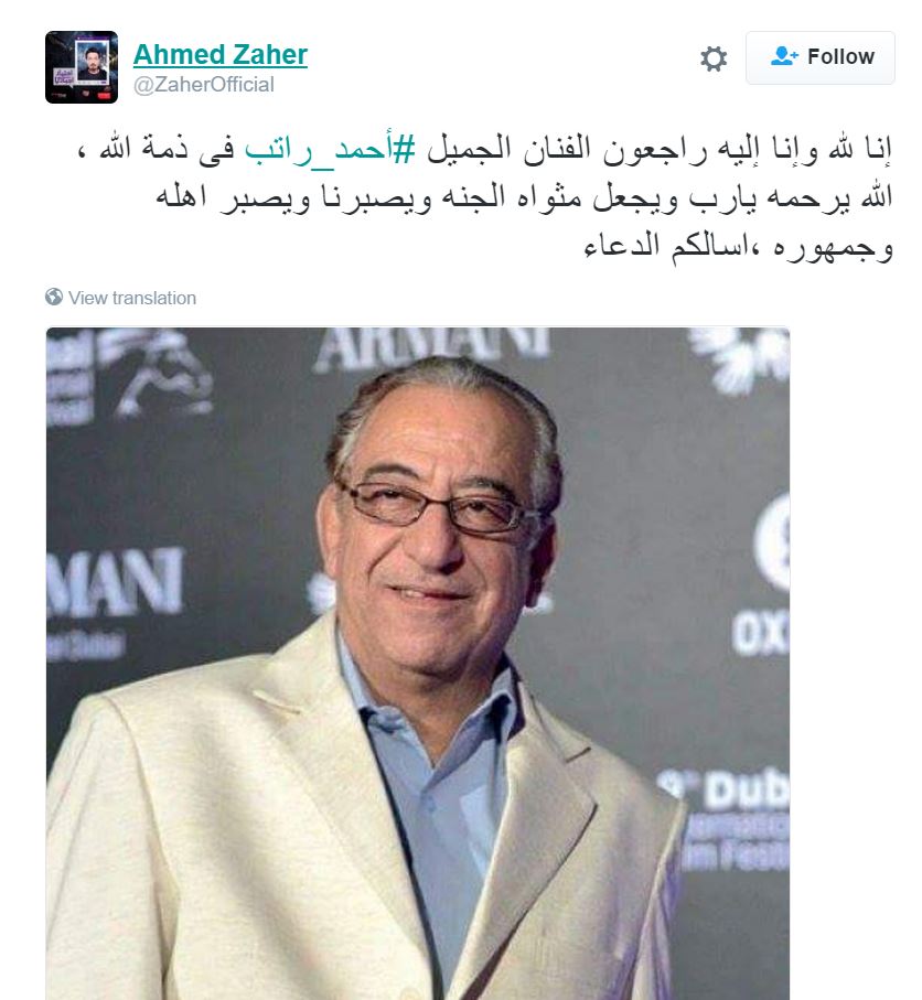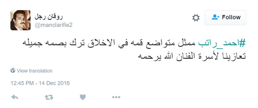 ودشن رواد مواقع التواصل، هاشتاجًا يحمل اسم الفنان – “أحمد_راتب” – عبروا من خلاله عن خالص تعازيهم، لرحيل الفنان، وتقديرهم لعطائه الفني خلال سنوات عمره.