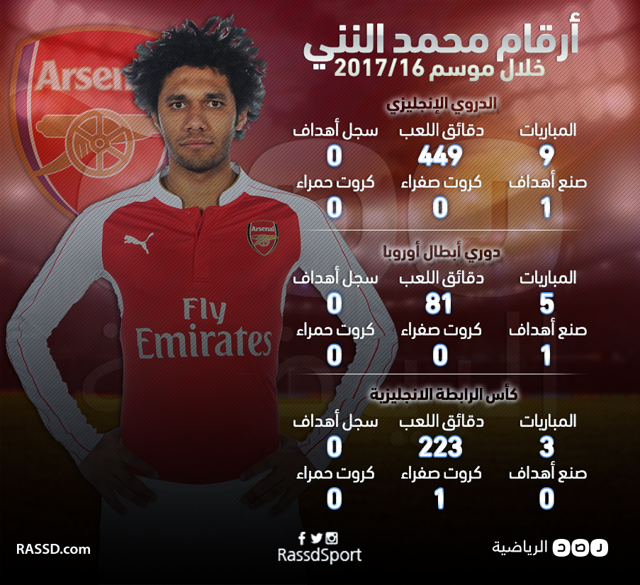 في الصورة التالية نستعرض الأرقام التي حققها النني منذ انضمامه لفريق آرسنال في بداية العام.