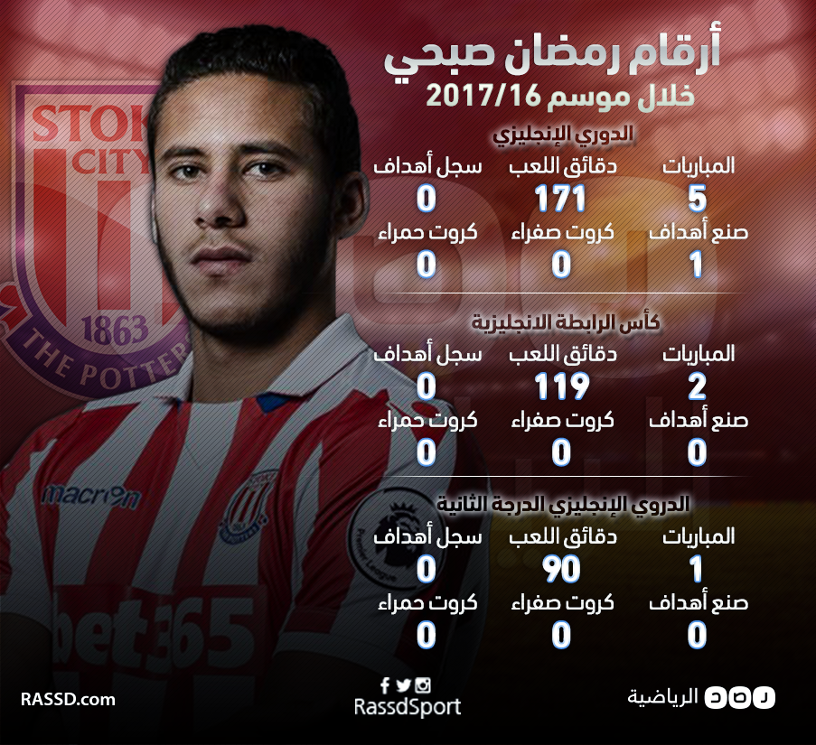 وحاول رمضان صبحي من خلال إثبات أدائه أن يجعل إشراكه أساسيًا في المباريات أمرًا ضروريًا، حيث 171 دقيقة لعب خلال 5 مباريات في الدوري الإنجليزي فقط هذا الموسم، ومبارتان في كأس الرابطة الإنجليزية بمجموع دقائق لعب 119 دقيقة، ومباراة كاملة في الدوري الإنجليزي الدرجة الثانية 90 دقيقة.