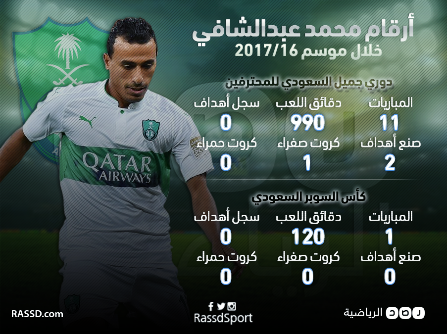 شاهد أرقام محمد عبدالشافي لاعب الأهلي السعودي مع فريقه خلال 2016.