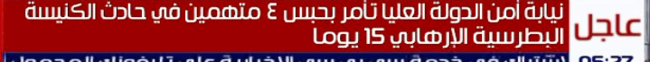 أمرت نيابة أمن الدولة العليا بحبس 4 من المتهمين في حادث تفجير الكنيسة البطرسية 15 يومًا على ذمة التحقيقات.