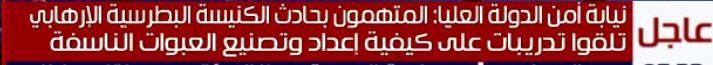 وبحسب ما عرضت قناة سي بي سي اكسترا، فإن النيابة أكدت أن المتهمين بحادث الكنيسة قد تلقوا تدريبات على كيفية إعداد وتصنيع العبوات الناسفة.