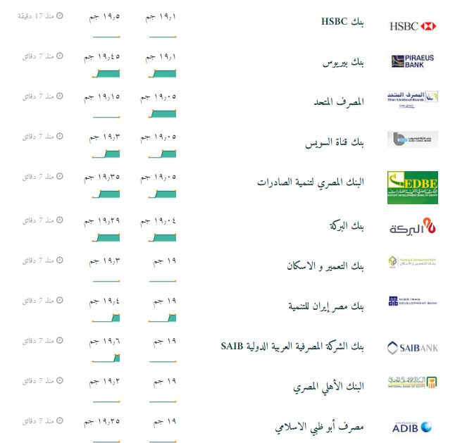 سجل في بنك فيصل 19 جنيهًا للشراء ، 19,75 جنيهًا للبيع .. البنك المصري الخليجي 18,99 جنيهًا للشراء و 19,25 جنيهًا للبيع.. بنك كريدي أجريكول مصر سعر 18.75 جنيهًا للشراء و18,95 جنيهًا للبيع.. بنك HSBC 19,1 جنيها للشراء, 19,5 جنيهًا للبيع.