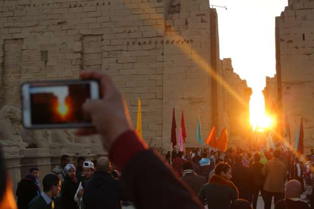 في ظاهرة سنوية، تعامدت الشمس على معبدي، الكرنك بالأقصر، وقصر قارون بالفيوم، حيث تمر الشمس على “قدس الأقداس” بمعبد الكرنك بالبر الشرقي وتتعامد على معبد حتشبسوت بالبر الغربي.