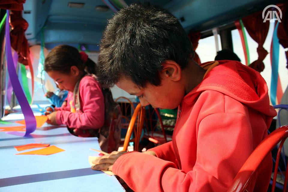 كاميرا الأناضول رافقت “باص التعليم المتنقل” في زيارته لمخيم النازحين في بلدة المسيفرة بريف درعا الشرقي، ومخيم زيزون بريفها الغربي، حيث تجمعت المئات من العائلات النازحة من مناطق الحرب في درعا، وجرى تنفيذ العديد من الأنشطة للأطفال داخل الحافلة التعليمية.