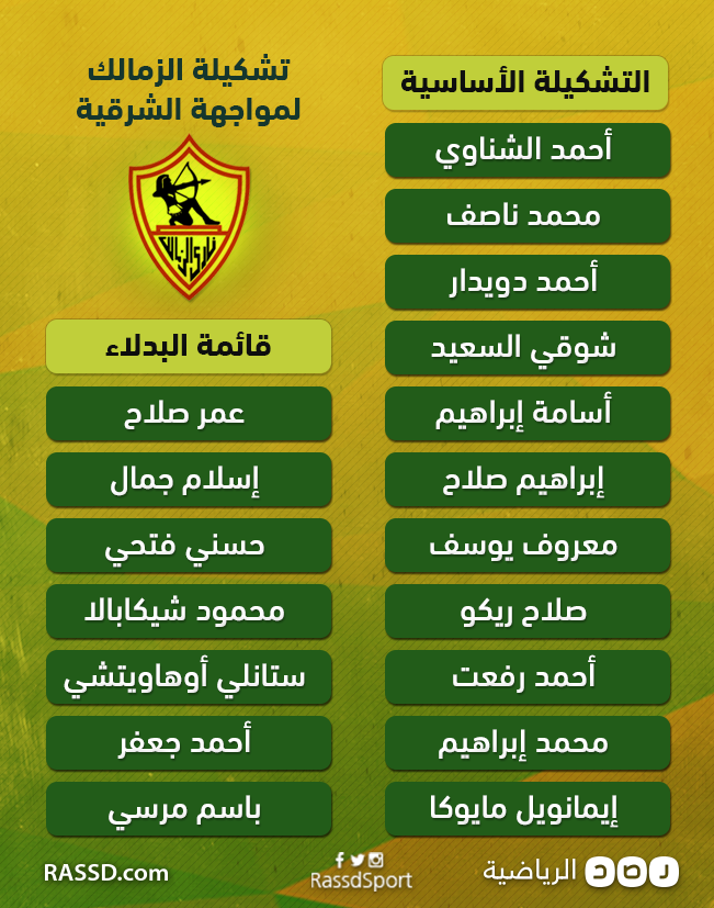 وشهدت تشكيلة الزمالك عدة تغييرات غير معهودة في التشكيل الأساسي للفريق، كما في الصورة التالية:
