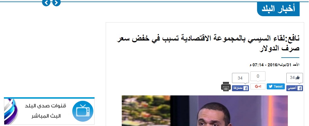 ونقلت موقع صدى البلد تصريح عن الدكتور مدحت نافع الخبير الاقتصادى وأستاذ التمويل بجامعة القاهرة، أن لقاء السيسي بالمجموعة الاقتصادية ومحافظ البنك المركزي تسبب في شحنة نفسية إيجابية لسوق الدولار، مما تسبب في انخفاض سعره مقابل الجنيه المصري، مشيرًا إلى أن الحديث عن تلقي السوق لمجموعة جديدة من الدولارات من خلال صندوق النقد الدولي والمنحة السعودية ساهم كذلك في خفض سعر الدولار.