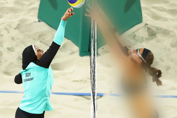 اجتاحت صور ملابس منتخبي مصر وألمانيا للكرة الشاطئية للسيدات مواقع الإنترنت، بعدما ظهرت لاعبة مصرية وهي ترتدي الحجاب أمام الألمانيات اللاتي كن يرتدين البكيني.