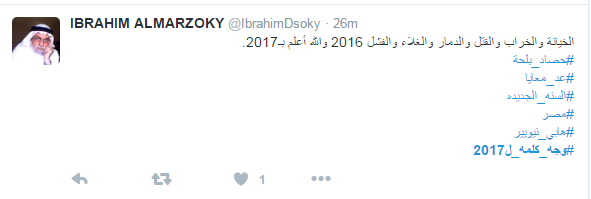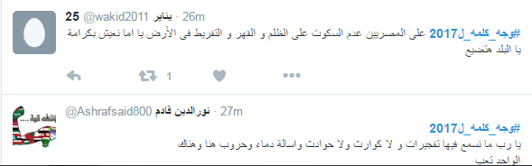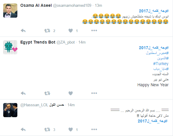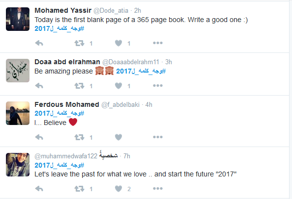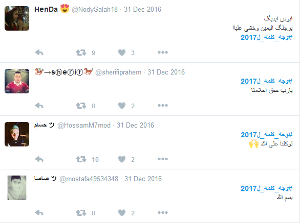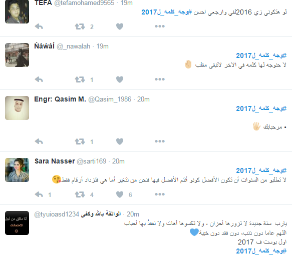 ودشن المغردون وسمًا بعنوان: “وجه كلمة لـ 2017″، ليحقق تريند على موقع “تويتر”، وتوحدت التغريدات المودعة لعام 2016 متمنيين في عام 2017 أن تكون سنة جديدة خالية من الهموم، معلقين: “لو زي 2016 لفي وارجعي تاني”.