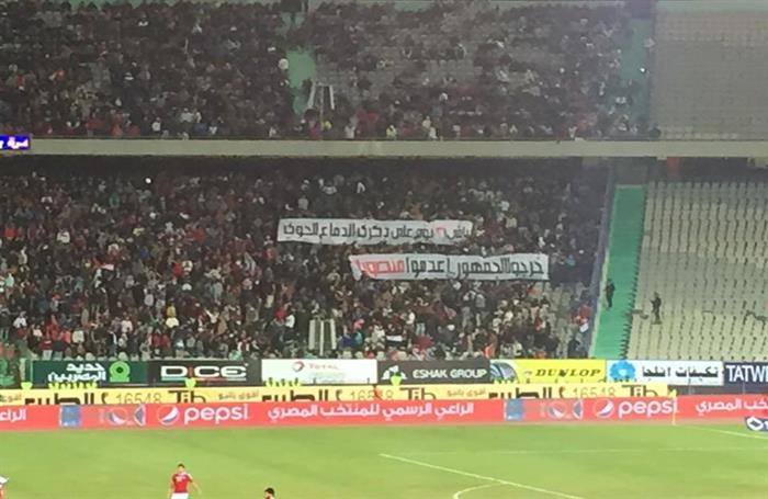 وكتبت على اللافتات البيضاء، عبارة :”خرجوا الجمهور وأعدموا منصور”، في إشارة إلى مرتضى منصور، وأخرى تذكر بالأيام الباقية على ذكرى مجزرة الدفاع الجوي التي راح ضحيتها أكثر من 20 مشجعًا لنادي الزمالك.