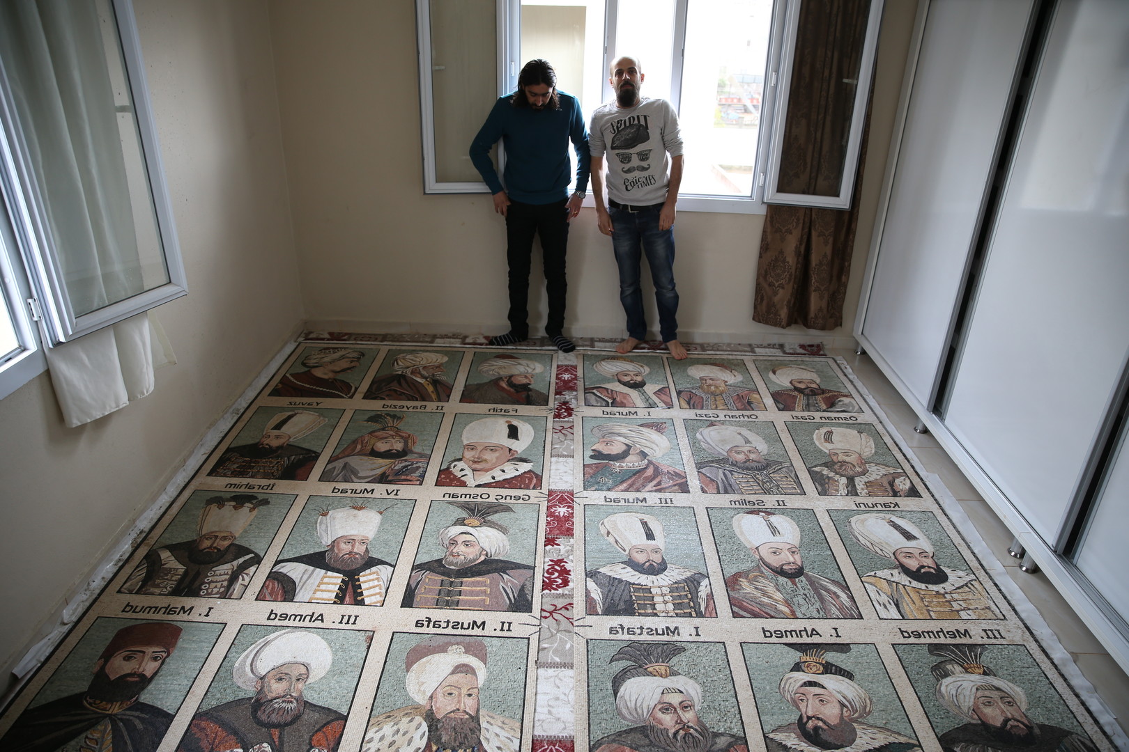 أراد أحد اللاجئين السوريين أن يعبر عن امتنانه للدور الذي تقوم به تركيا في مساندة اللاجئين ودعمهم بشكل مختلف، بعيد عن كلمات الشكر المعهودة، فاستغل موهبته الفنية ليقدم جداريات من الفسيفساء لوجوه 36 سلطان عثماني، استخدم فيها 1.5 مليون قطعة حجر.