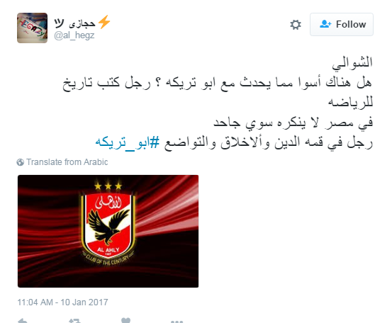 احتفى مغردو موقع التديون العالمي “تويتر” بحكم محكمة القضاء الإداري بمجلس الدولة، اليوم الثلاثاء، والتي أيدت بطلان التحفظ على أموال لاعب الأهلي السابق محمد أبوتريكة.
