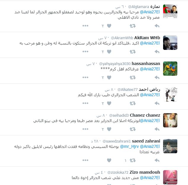 وتابع “كجزائري أعرف مكانة محمد أبو تريكة في قلوب الجزائريين أكبر مما تتخيل، أذكر في لقاء الجزائر ومصر، الأول في 2009 في ملعب مصطفى شاكر، الكثير من الجماهير الجزائرية انتظرت حافلة المنتخب المصري، بعد نهاية اللقاء، فقط لكي تحيي أبو تريكة، وأهدوه الورود، والتقطوا معه الصور”.