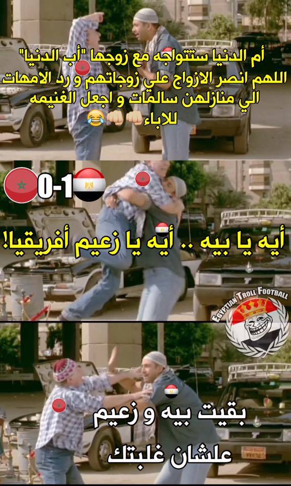 وتلقى رواد ونشطاء مواقع التواصل الإجتماعي خبر فوز مصر على المغرب، بنشر صور ساخرة، ننشر بعضًا منها في التالي: