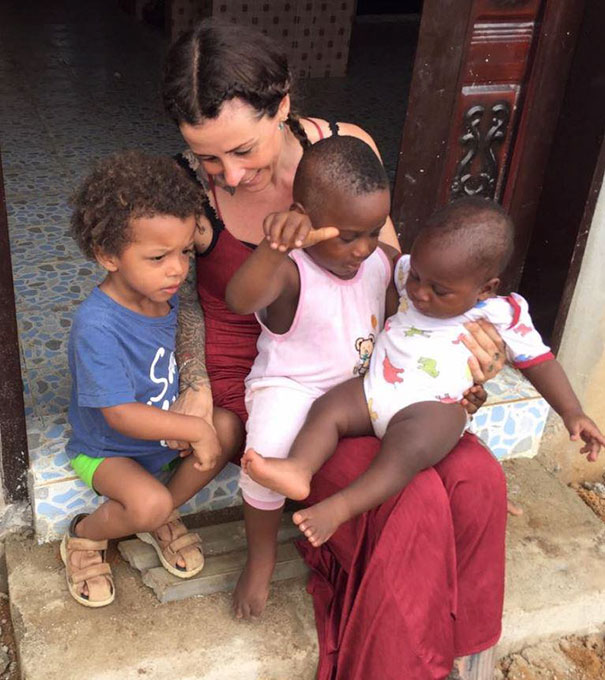 أنجا تعمل لمؤسسة DINNødhjælp الإغاثية (وهي منظمة تطوعية دنماركية تعمل في نيجيريا)