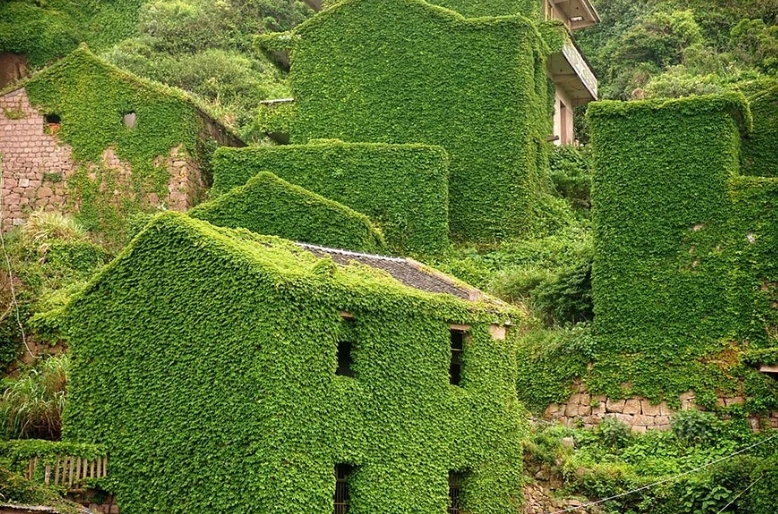 كست الطبيعة القرية جوقي، الواقعة في إقليم أرخبيل شنجسي Shengsi في الصين، باللون الأخضر، بعد أن هجرها أهلها وتوقفت كافة الانشطة على أرضها.