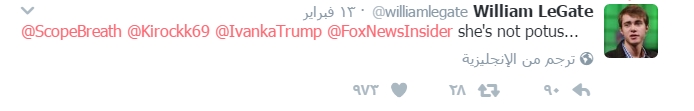 وتسببت الصورة التي نشرتها إيفانكا، في إثارة الجدل على موقع تويتر، حيث انتقد المتابعون، جلوسها على المكتب الرئاسي، في اغرفة البيضاوية بالبيت الأبيض، مشيرين إلى أنها غير منتخبة كي تجلس على هذا الكرسي.