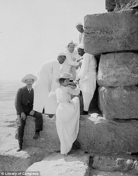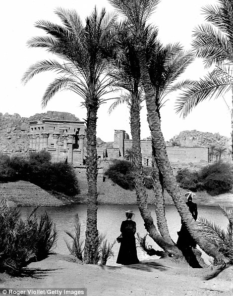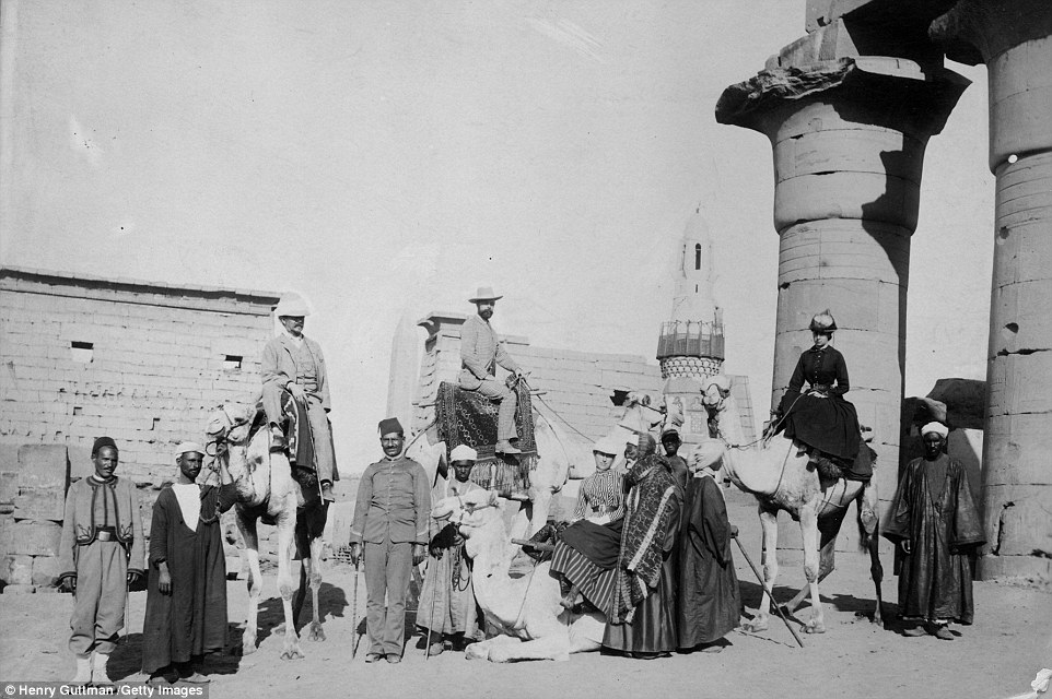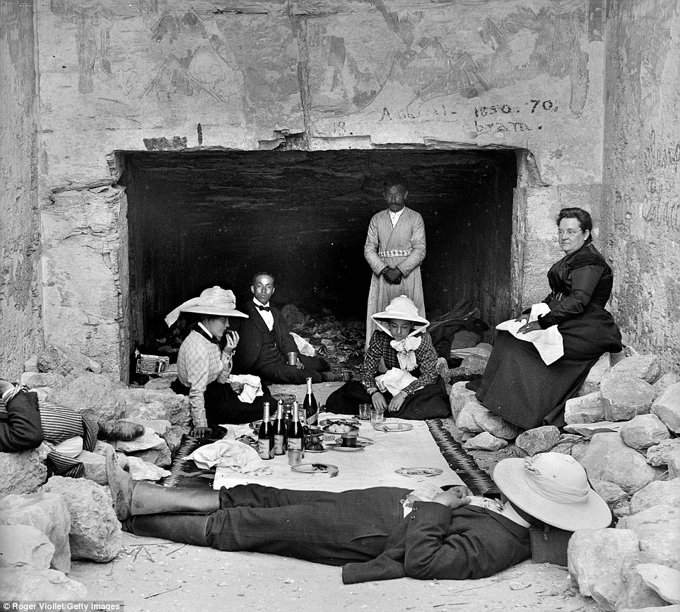 وتظهر مجموعة من الصور الممتازة التقطت في الفترة ما بين عامي 1890 و1930 الفيكتوريين يستمتعون بالنزهة وينامون قيلولة بعد الغداء داخل أحد المعابد المنقوش عليها بالكتابة الهيروغليفية.