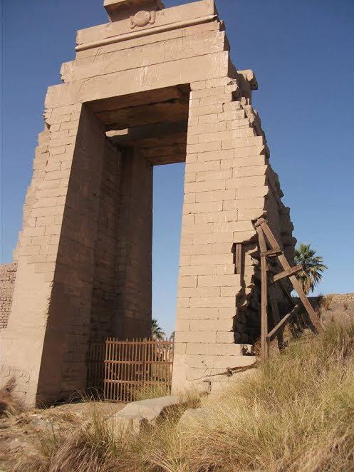 اُلتُقطت مجموعة من الصور لبوابة معبد الكرنك الشرقية بالأقصر وهي مدعومة بألواح خشبية؛ بسبب أنها آيلة إلى السقوط.