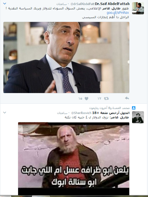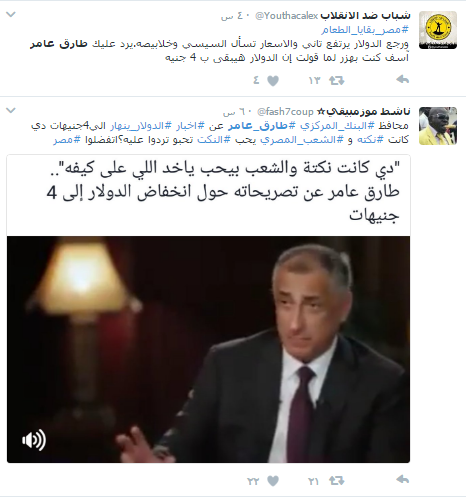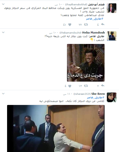 واستقبل رواد مواقع التواصل الاجتماعي تصريح طارق عامر بالسخرية والنقد اللاذع على هاشتاج باسمه أصبح “تريند” في وقت قياسي، وألصقوا تصريحه بمقولة عبد الحكيم عامر صاحب النكسة العسكرية 1967م، عندما قال “ممكن ندخل اسرائيل في نكسة 1967”، ووصفوا عامر بأنه صاحب “نكسة تعويم الجنيه”.