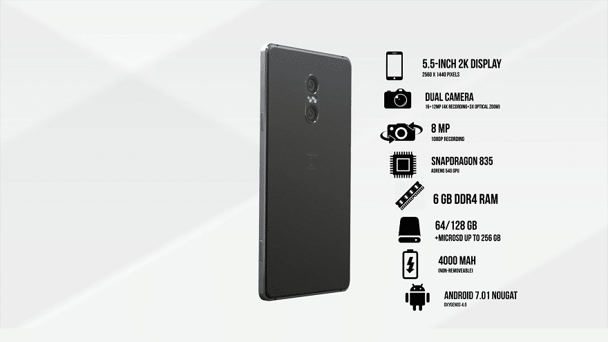كما بأتي الهاتف بمواصفات: شاشة بقياس 5.5 بوصات وبدقة 2560×1440 بكسلًا، إلى جانب ذاكرة وصول عشوائي “رام” بحجم 6 جيجابايتات، و 64/128 جيجابايتًا من مساحة التخزين الداخلية القابلة للتوسعة.