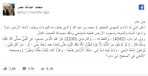وأثار “الشيخ ميزو” جدلًا واسعًا في الشارع المصري وعبر مواقع التواصل الاجتماعي عندما ادعى أنه “المهدي المنتظر”؛ حيث أعلن في وقت سابق عبر صفحته على موقع التواصل الاجتماعي “فيس بوك” قائلًا: “بيان هام، أعلن أنني أنا الإمام المهدي المنتظر (محمد بن عبدالله) الذي جاءت به النبوءات، وجئت لأملأ الأرض عدلًا وأدعو شعوب الأرض قاطبة لمبايعتي”.