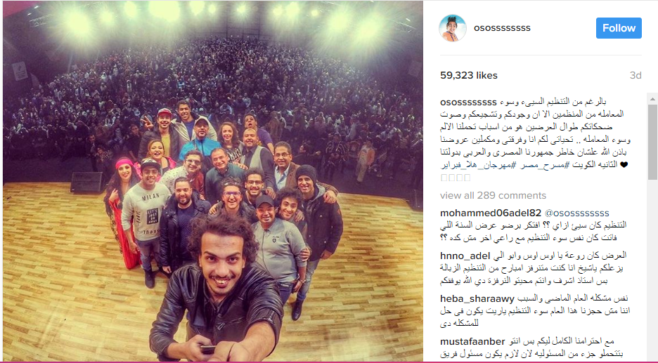وفي السياق نفسه، كتب الممثل محمد أسامة، الشهير بـ”أوس أوس”، تدوينة على إنستجرام أقر فيها بما حدث وموجهًا شكره للجمهور كذلك، وقال: “بالرغم من التنظيم السيئ وسوء المعاملة من المنظمين إلا أن وجودكم وتشجيعكم وصوت ضحكاتكم طوال العرضين هو من أسباب تحملنا الألم وسوء المعاملة. تحياتي لكم أنا وفرقتي ومكملين عروضنا بإذن الله علشان خاطر جمهورنا المصري والعربي بدولتنا الثانية الكويت”.