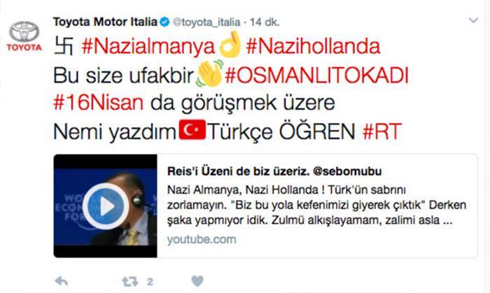 وكان نشطاء أتراك مؤيدين للرئيس رجب طيب أردوغان قد اخترقوا العديد من حسابات تويتر الموثقة لشخصيات ومؤسسات أوروبية بارزة مثل صحيفة “دي فيلت” الألمانية ومجلة “فوربس”، و”بي بي سي” أمريكا الشمالية، و”رويترز” اليابان، كما تم اختراق مواقع إخبارية عربية في منطقة الشرق الأوسط ونشروا عليها عدد من الهاشتاجات التركية مثل “نازي ألماني” ونازي هولندي”، واخترقوا حسابات “تويتر” للبرلمان الأوروبي، والسياسيين الفرنسيين مثل: آلان جوبيه، والرئيس التنفيذي لشركة سبرينت كورب، والرئيس مارسيلو كلور .