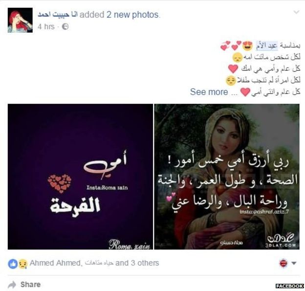 وعلى فيس بوك، تحدث عن عيد الأم أكثر من 88 ألف مستخدم. وبالإضافة إلى الصور والأشعار، نشر بعض مستخدميه صورًا لأمهاتهم وتعازي للذين فقدوا أمهاتهم.