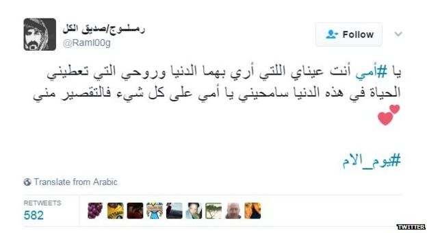 أما هاشتاج “#بكلمتين_لأمك” فظهر في 185 ألف تغريدة، تضمنت أقوالًا وأشعارًا وشكرًا من المغردين لأمهاتهم.